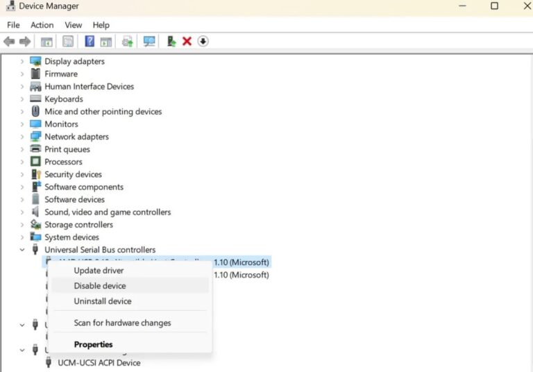 - Bước 3: Nhấp chuột phải vào cổng USB, chọn “Disable device”
